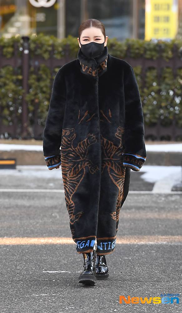 가수 송가인이 1월 21일 오전 ‘2022 설날특집 KBS 조선팝어게인 송가인' 녹화를 위해 서울 영등포구 KBS로 들어서고 있다.