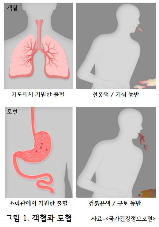 실제 침에 피가 섞여 있으면 위험한 것일까? '객혈과 토혈' 그리고 '출혈의 양'을 알면 크게 두려워하지 않아도 된다.