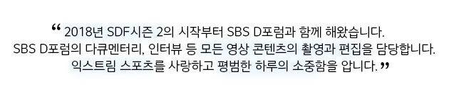 안녕하세요? 오늘은 저희 팀(SBS D포럼팀)의 기쁜 소식을 전하는 것으로 시작하려 합니다. 저희 팀에서 다큐멘터리와 인터뷰 등 콘텐츠의 촬영과 편집을 담당해온 임세종 감독이 세계적인 액션 카메라 업체에서 개최하는 영상 경연 대회에서 3번이나 수상자로 선정됐습니다.