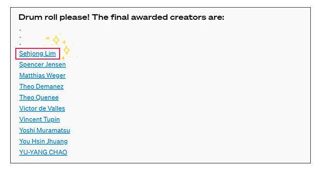 특히 이번에는 전 세계 131국에서 2만8000건의 영상이 응모했고, 그중 62개의 영상이 심사를 거쳐 뽑혔는데요. 국내에서 뽑힌 2명 가운데 한 명이 저희 임세종 감독이고 3번이나 수상한 국내 감독은 임 감독이 유일하다고 합니다!!! (새삼 우리가 어떤 분들과 일하고 있는지 깜짝깜짝 놀랍니다^^) 이 대회는 상금도 어마어마하다는데 경연대회의 이름이 밀리언 달러 챌린지였거든요. 1밀리언 달러는 62명이 나눠 가지면…헉…임 감독님에게 밥 사라고 해야겠습니다^^