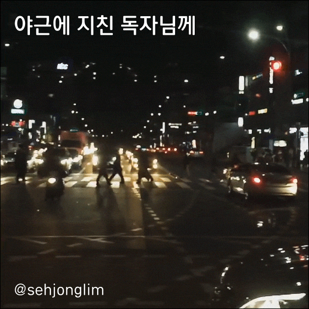 이 영상은 제가 버스 타고 집으로 가던 중 즉흥적으로 촬영한 영상이에요. 스마트폰의 슬로모션만 사용했습니다. 숨 쉴 틈도 없이 바쁘게 돌아가는 일상에 정지 버튼을 누른 느낌이라고 할까요?