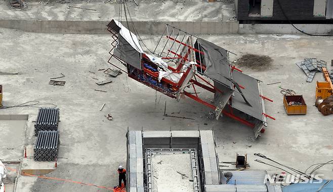 지상으로 내려온 광주 신축 아파트 거푸집
