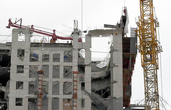 '붕괴' 광주 신축 아파트 거푸집 제거