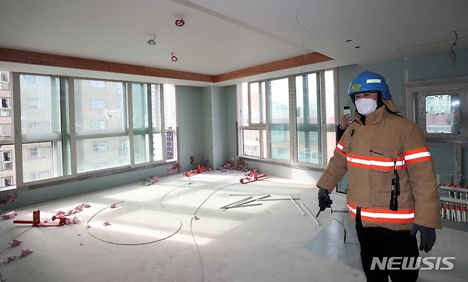 [광주=뉴시스] 류형근 기자 = 광주 서구 화정동 현대산업개발 신축 아파트 붕괴 사고 12일째인 22일 오후 신축 아파트 10층 부근. (공동취재사진). 2022.01.22. photo@newsis.com