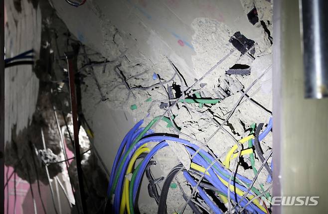 [광주=뉴시스] 류형근 기자 = 광주 서구 화정동 현대산업개발 신축 아파트 붕괴 사고 12일째인 22일 오후 신축 아파트 내부에 콘크리트와 철근 등이 무너져 있다. (공동취재사진). photo@newsis.com