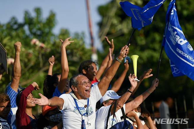 ![[바리나스(베네수엘라)=AP/뉴시스] 베네수엘라에서 1월9일 재선거를 통해 마두로 정권의 사회당 중심지인 바리나스주의 주지사에 당선된 세르지오 가리도 야당후보가 지지자들을 향해 손을 들어보이고 있다. 그는 정부여당후보인 호르헤 아레아사전 외무장관을 누르고 승리했다.](https://img4.daumcdn.net/thumb/R658x0.q70/?fname=https://t1.daumcdn.net/news/202201/23/newsis/20220123073906287asre.jpg)