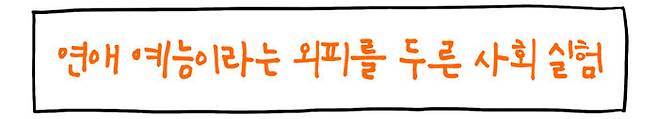 현실의 나는 야근을 마치고 치솟는 집값을 걱정하며 씻지도 못한 채 쓰러져 잠들더라도, 매력을 두고 핑퐁 게임을 벌이는 '연애'는 여전히 가치 있고, 또 아름다운 것이라는 희망을 가지고 TV를, 태블릿PC를, 휴대전화를 켜고 리얼리티를 시청합니다. '연애 없는 연애 시대'는 여전히 뜨겁습니다.