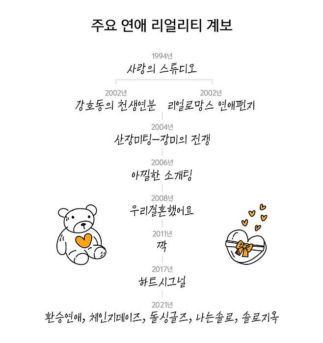 인기 요인을 따지기 전에 역사부터 짚어보도록 하겠습니다. '짝짓기 프로그램'의 역사는 유구합니다. 2000년대부터 전 세계적으로 리얼리티 프로그램 붐이 일기 시작했습니다. 영국 ITV의 <Britain's Got Talent>와 미국 폭스TV의 <American Idol>을 시작으로 국내에도 각종 경연 프로그램이 활개를 치기 시작했죠.