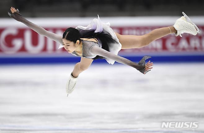 [탈린=AP/뉴시스] 이해인이 22일(현지시간) 에스토니아 탈린의 톤디라바 아이스 홀에서 열린 국제빙상경기연맹(ISU) 피겨스케이팅 4대륙 선수권대회 여자 싱글 프리스케이팅에 출전해 연기하고 있다. 이해인은 여자 싱글 프리스케이팅에서 기술점수(TES) 76.42, 예술점수(PCS) 67.13, 합계 143.55점으로 전날 쇼트프로그램 점수 69.97점을 합해 최종 213.52점으로 개인 최고점을 새로 쓰며 은메달을 차지했다. 2022.01.23.