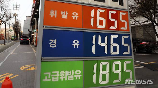 [서울=뉴시스] 이영환 기자 = 지난해 11월 유류세 인하 조치 이후 하락세를 보이던 국내 기름값이 상승세로 방향을 전환한 23일 서울 서대문구의 한 주유소에 유가정보가 표시되어 있다. 22일 한국석유공사 유가정보서비스 오피넷에 따르면 1월 셋째 주 전국 주유소 휘발유 판매 가격은 전주 대비 10.1원 오른 ℓ당 1632원을 기록했다. 2022.01.23. 20hwan@newsis.com
