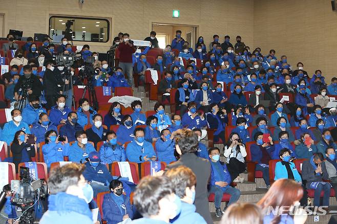[원주=뉴시스] 김경목 기자 = 23일 오후 더불어민주당 강원 대전환 선거대책위원회 출범식이 강원도 원주시 원주문화원 문화공연장에서 열리고 있다. 2022.01.23. photo31@newsis.com