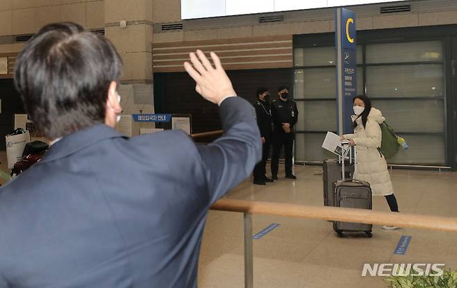 [인천공항=뉴시스] 국회사진기자단 = 안철수 국민의당 대선 후보가 23일 오후 인천국제공항을 통해 귀국하는 딸 안설희 박사를 마중하고 있다. 2022.01.23. photo@newsis.com