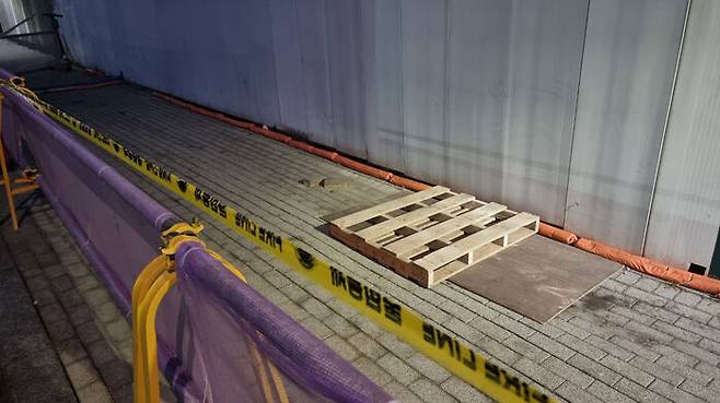 어젯(24일)밤 8시 반쯤, 서울 강서구 마곡동의 한 건설현장 옆 인도에서 가로 0.5m, 세로 1.5m, 깊이 3m의 싱크홀이 발생했습니다.