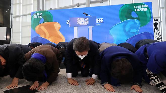 더불어민주당 이재명 대선후보가 오늘(24일) 국민들을 향한 사과와 새로운 정치의 각오를 담겠다며 '큰절'을 했습니다.