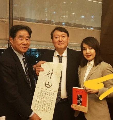 | ▲ 주역전문가 서대원 초아주역연구원 원장이 지난 2018년 2월께 윤석열 국민의힘 대선후보(당시 서울중앙지검장)와 김건희씨를 만났을 때의 사진이다. 당시 서 원장은 윤 후보에게 '율산(律山)'이라는 아호를 지어줬다. |