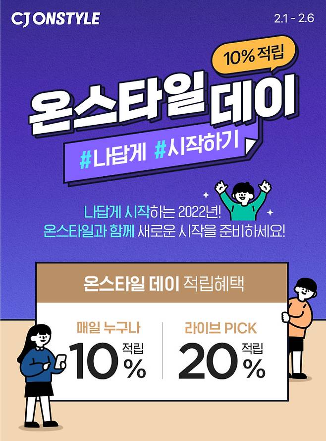 한편 CJ온스타일은 다음 달 1일부터 6일까지 정기 쇼핑 축제 '온스타일데이’를 다음달 1일부터 6일까지 진행한다. TV홈쇼핑 방송 상품을 CJ온스타일 앱으로 결제 시 적립금 10%를 지급하고, 일부 상품은 20%를 적립해 준다.