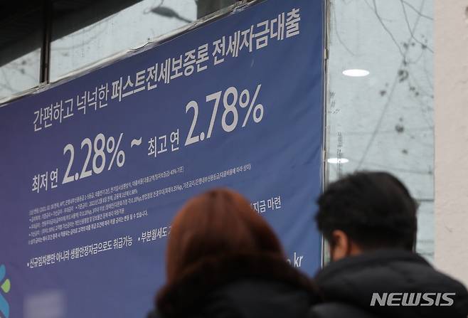 사진은 25일 서울의 한 은행에 내걸린 대출상품 홍보 현수막.