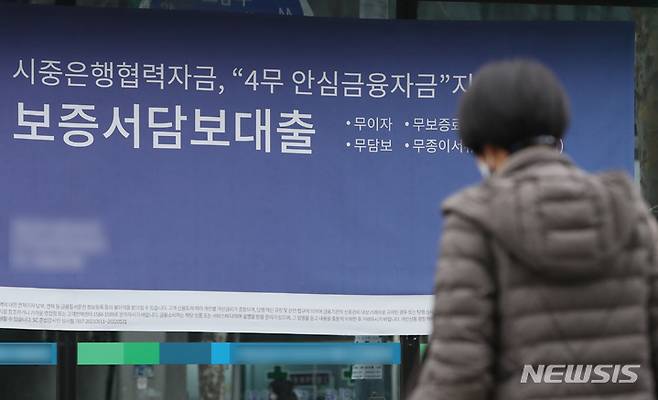 사진은 25일 서울의 한 은행에 내걸린 대출상품 홍보 현수막.