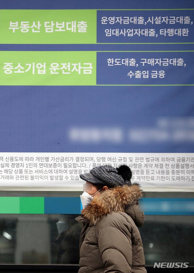 [서울=뉴시스] 고승민 기자 = 연초부터 은행들의 가계대출 증가세가 심상치 않다. LG에너지솔루션 일반공모 청약증거금으로 신용대출이 급증한 일시적 현상이라는 의견이 있지만, 당국의 고강도 대출규제에 따른 가수요 현상이라는 지적도 나온다. 사진은 25일 서울의 한 은행에 내걸린 대출상품 홍보 현수막. 이날 은행권에 따르면 5대 시중은행의 가계대출 잔액 합계는 지난 20일 기준 718조4,829억원으로 지난해 말(709조529억원) 대비 9조원 이상 늘어났다. 올해 5대 은행이 가계에 공급할 수 있는 총 대출규모는 31조5000억원으로 추산되는데 약 30%가 14영업일 만에 동이 난 셈이다. 2022.01.25. kkssmm99@newsis.com