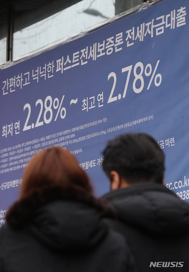 사진은 25일 서울의 한 은행에 내걸린 대출상품 홍보 현수막.