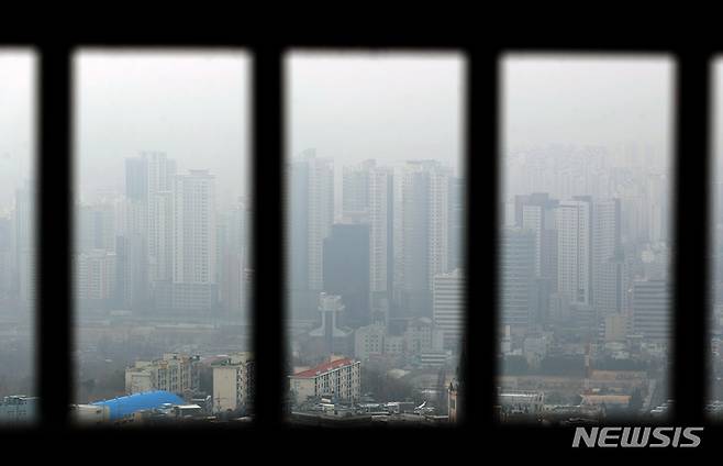 [서울=뉴시스] 고승민 기자 = 기준금리 인상과 대출규제 여파로 전국 고가 아파트와 저가 아파트간 가격 격차가 역대 최대로 벌어진 것으로 나타났다. KB부동산 월간주택가격동향 시계열에 따르면 1월 전국 아파트 상위 20%(5분위) 평균 매매가격은 12억1332만원, 하위 20%(1분위)는 1억2407만원으로 나타났다. 사진은 25일 서울 남산에서 바라본 서울시내 아파트 모습. 전문가들은 기준금리 인상과 대출규제 강화로 집값 양극화가 심화되고 있다고 분석한다. 고가 주택의 경우 이미 대출이 어려운 상황이라 대출규제 영향이 적지만 중저가 아파트의 경우 직격탄을 맞고 있다는 것이다. 2022.01.25. kkssmm99@newsis.com