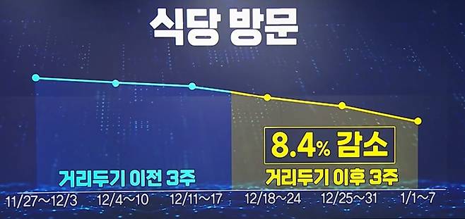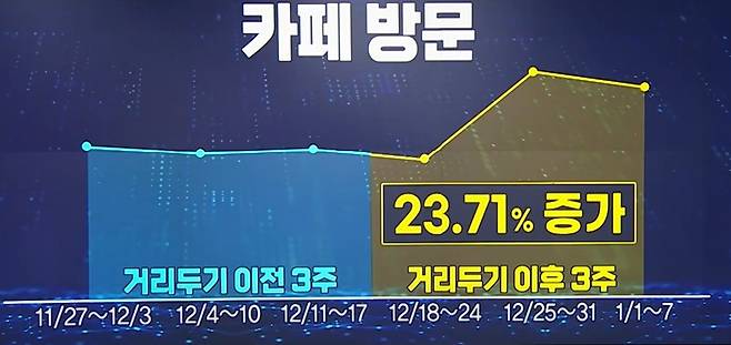 ‘거리두기 강화 이후, 전국 식당과 카페 이용률이 얼마나 달라질까? 두 업종에 미치는 영향이 비슷할까, 다를까?’