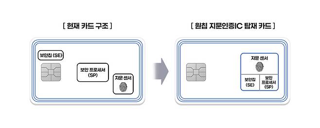 생체인증카드는 사용자의 지문 정보를 읽고, 인증할 수 있는 IC가 내장된 카드다. 지문 센서에 손가락을 올린 상태에서 카드를 단말기에 삽입하거나 터치해야 결제가 진행된다. 하드웨어 보안 칩은 다양한 해킹 방식으로부터 정보가 빠져나가지 않게 지문 정보를 암호화하고, 안전하게 저장할 수 있어 보안 수준이 매우 높다. 보안 프로세서는 허가받지 않은 지문을 빠르고 정확하게 파악할 수 있다. 해킹 방지 기술도 갖춰 위조된 지문을 활용해 보안 시스템에 접근하는 것을 사전에 방지한다. 지문 정보는 개인 카드에만 저장된다.