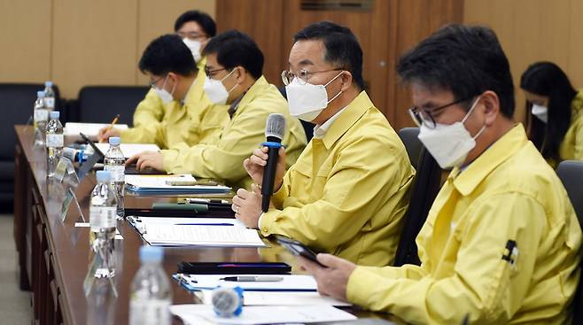 [서울=뉴시스] 추상철 기자 = 이승우 행정안전부 재난안전관리본부장이 25일 서울 마포구의회 회의실에서 열린 '현장방역(보건소) 관계부처 및 전국 보건소장협의회 간담회'에 참석해 인사말을 하고 있다. (사진= 행정안전부 제공) 2022.01.25. photo@newsis.com *재판매 및 DB 금지