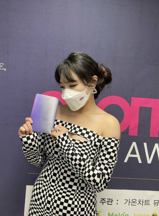 이은지는 27일 인스타그램에 "불러주셔서 감사합니다! #가온차트뮤직어워즈"라고 적고 사진을 게재했다.