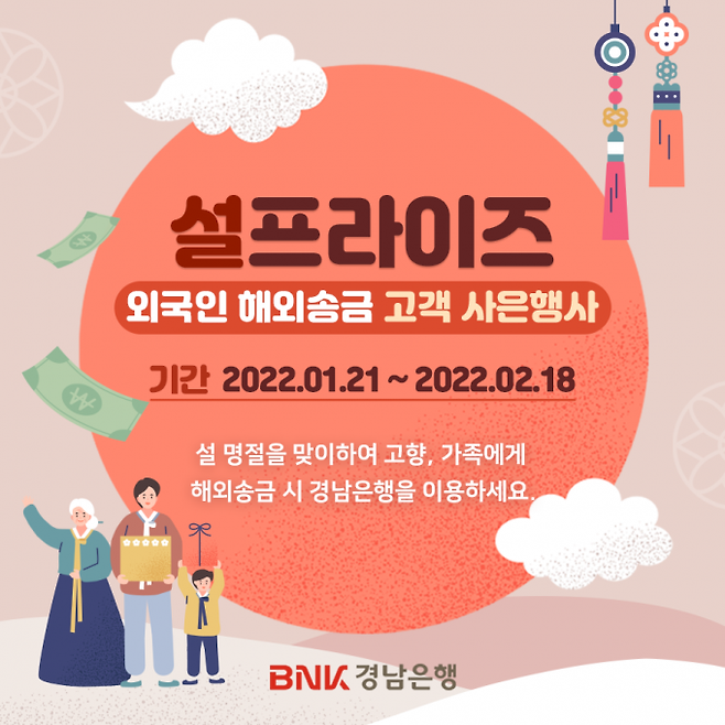 BNK경남은행은 민족 최대 명절 설을 앞두고 ‘설프라이즈 외국인 해외송금 사은행사’를 2월18일까지 진행한다.