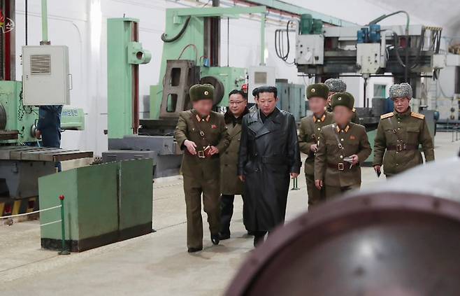 [서울=뉴시스] 조선중앙TV는 28일 김정은 조선노동당 총비서 겸 국무위원장이 군수공장을 시찰했다고 보도했다. 날짜 및 장소는 보도되지 않았다. (사진=조선중앙TV 캡처) 2022.01.28. photo@newsis.com *재판매 및 DB 금지