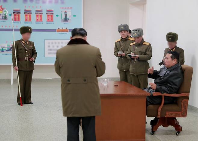 [서울=뉴시스] 조선중앙TV는 28일 김정은 조선노동당 총비서 겸 국무위원장이 군수공장을 시찰했다고 보도했다. 날짜 및 장소는 보도되지 않았다. (사진=조선중앙TV 캡처) 2022.01.28. photo@newsis.com