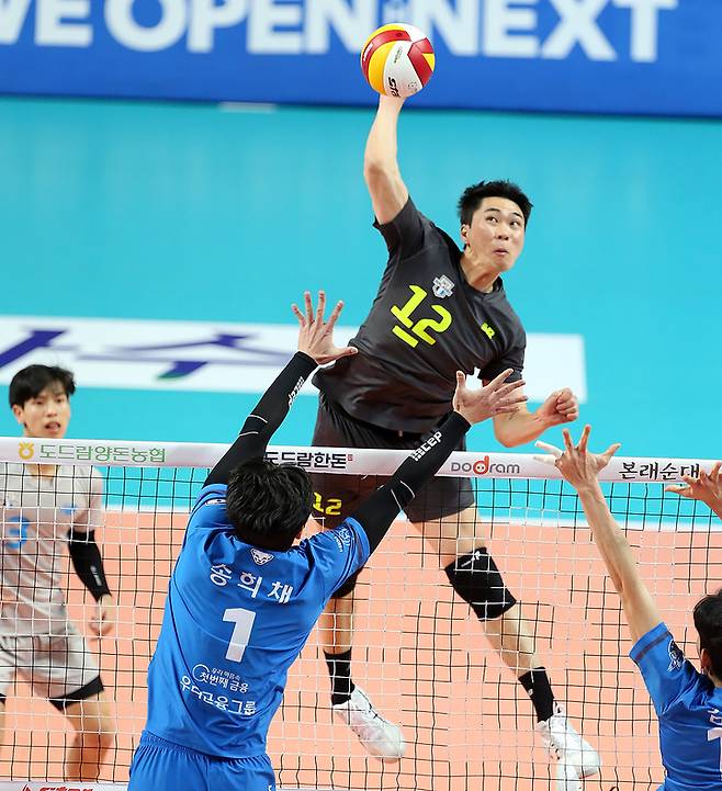 [서울=뉴시스] 고승민 기자 = 28일 서울 장충체육관에서 열린 2021-2022 V리그 현대캐피탈 대 우리카드 경기, 현대캐피탈 전광인이 스파이크를 하고 잇다. (사진=현대캐피탈 배구단 제공) 2022.01.28. photo@newsis.com *재판매 및 DB 금지