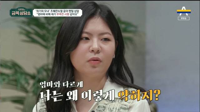 28일 방송된 채널A '오은영의 금쪽상담소'(이하 '금쪽상담소')에서는 개그계 슈퍼우먼 조혜련과 딸 김윤아 모녀의 고민이 공개됐다.