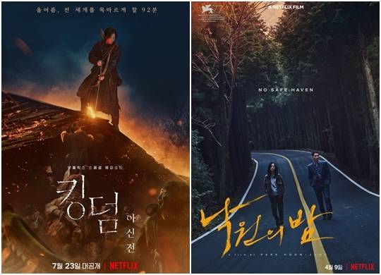 1위 365일-2위 킹덤:아신전-3위 낙원의 밤-4위 승리호-5위 극장판 귀멸의 칼날:무한 열차 편-6위 싱크홀-7위 새콤달콤-8위 레드 노티스-9위 기생충-10위 삼진그룹 영어토익반(사진 위=넷플릭스/아래=워터홀 컴퍼니㈜ ㈜쇼박스 제공)