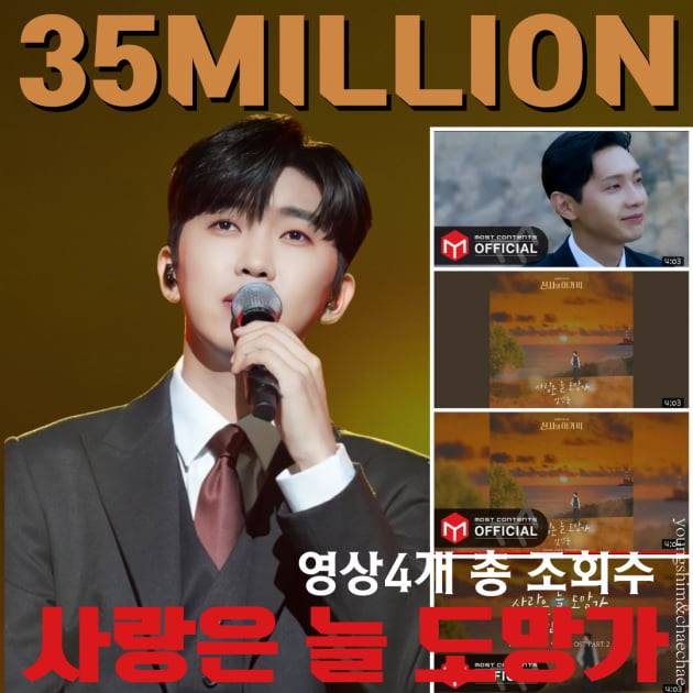 가수 임영웅 첫 OST '사랑은 늘 도망가' 영상 총 조회수가 3500만 뷰를 넘어섰다.