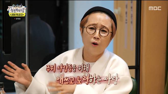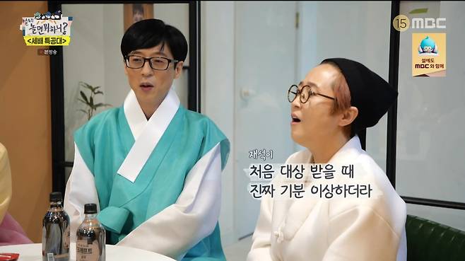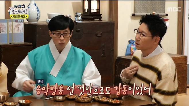 이어 MSG워너비로 활약했던 지석진을 만났다. 유재석은 "'놀면뭐하니'가 자리 잡도록 터를 잡아줬다"며 고마움을 전했다. 인생의 새 전환기가 된 MSG워너비 활동에 대해 그는 "너무 따뜻했다. 너무 좋다. 30년 전 음반 낸 후 음악방송에 선 것이 감동이었다"고 말했다.