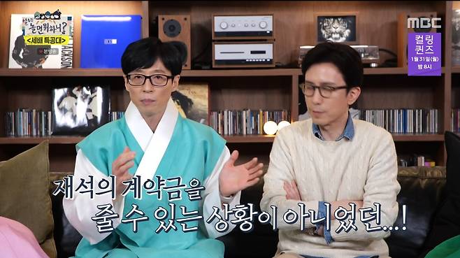 유재석은 "계약금을 안 받고 편안하게 일을 하겠다"고 밝혔지만 유희열은 이를 반대했다고. 그는 "유재석의 상징성이 있다. 수많은 예능 후배들에게 이런 선의가 나쁜 선례가 될 수도 있다"면서 "이렇게 유재석은 선의를 베풀고 최고의 미담이 기사로 난다. 나는 자본주의의 끝판왕이 됐다"고 투덜거려 폭소케 했다.