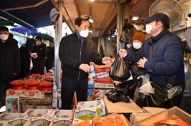 설 연휴 첫날, 전통시장 찾은 오세훈 서울시장
