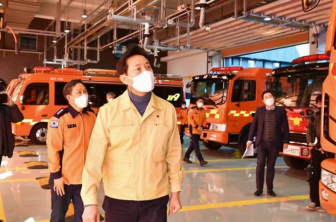 [서울=뉴시스] 조수정 기자 = 오세훈 서울시장이 29일 오후 서울 금천소방서를 찾아 오미크론 대응 응급출동 체계 점검 및 근무자를 격려하고 있다. (사진=서울시 제공) 2022.01.29. photo@newsis.comъ쭊) :????쏼?6uwQ좝w?븏?븏3?ビ솰R