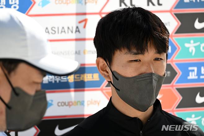 [두바이(아랍에미리트)=뉴시스] 배훈식 기자 = 대한민국 국가대표 황인범이 30일 오전 아랍에미리트 두바이 폴리스 오피서즈 클럽에서 2022 카타르 월드컵 최종예선 시리아 전을 앞두고 인터뷰를 하고 있다. 2022.01.30. dahora83@newsis.com