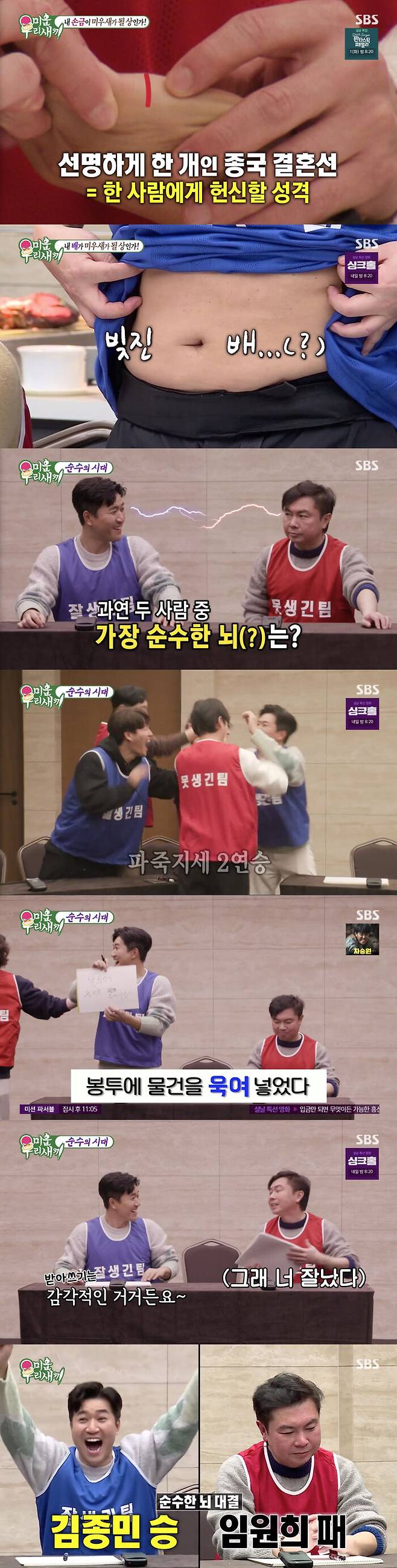 [스브스夜] '미우새' 김종민, 임원희와 '순수한 뇌' 대결 압승..손금 가장 좋은 회원은?