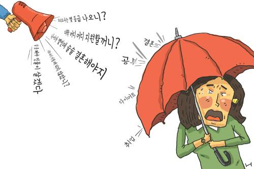 이런 사생활을 침범하는 질문은 좋지 않지만, 이런 질문을 받더라도 그 자리에서 화를 내거나 불쾌감을 표현하는 것은 좋지 않다. 특히 감정적으로 예민해진 상태에서 대화가 오고가다 보면 자칫 큰 싸움으로 번질 수도 있다. ‘좋은 소식을 전해드릴 수 있도록 저도 열심히 노력하겠습니다’ 정도로만 대답하고 대화 주제를 벗어나는 것이 현명한 대화법이다.
