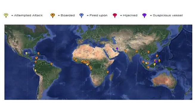 지난해 전세계에서 발생한 해적 사건이 30% 이상 감소했지만, 싱가포르 해협과 아메리카 해역 등 일부 해역은 오히려 늘어난 것으로 나타났습니다.