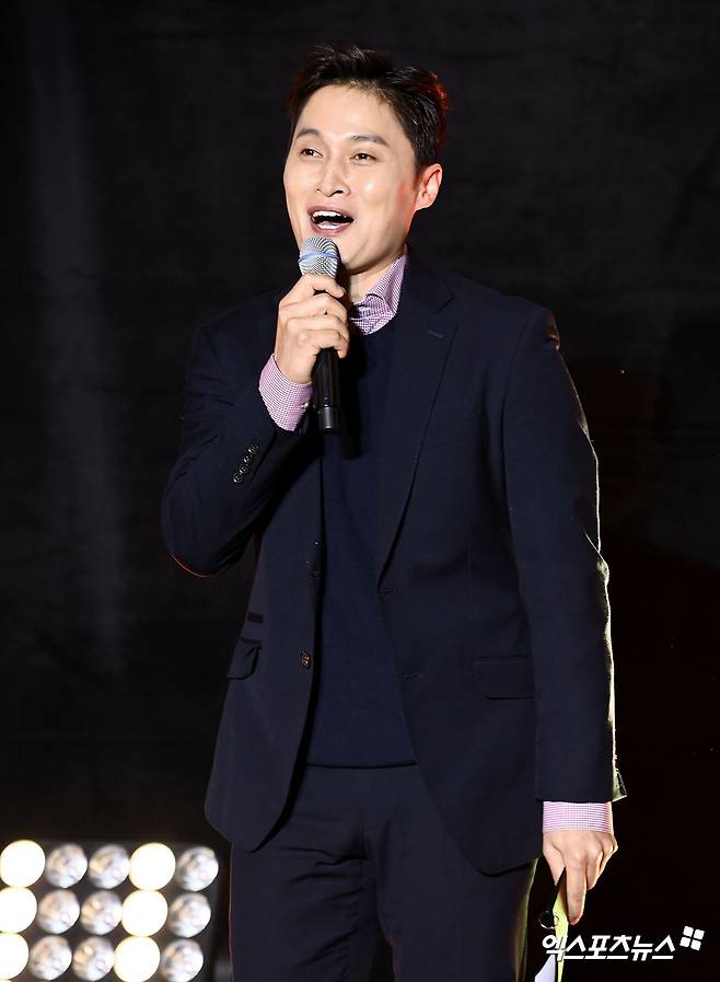 개그맨 송준근이 쇼케이스 MC를 맡아 진행하고 있다.