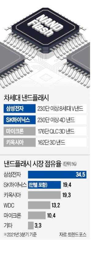 삼성전자 SK하이닉스와 달리 해외 경쟁사들의 낸드 200단 진입엔 시간이 필요하다는 게 업계의 중론이다. 일본의 키옥시아는 162단 낸드를 개발 중이다. 미국의 마이크론은 176단 낸드의 완성도를 높이는 데 주력하고 있다.