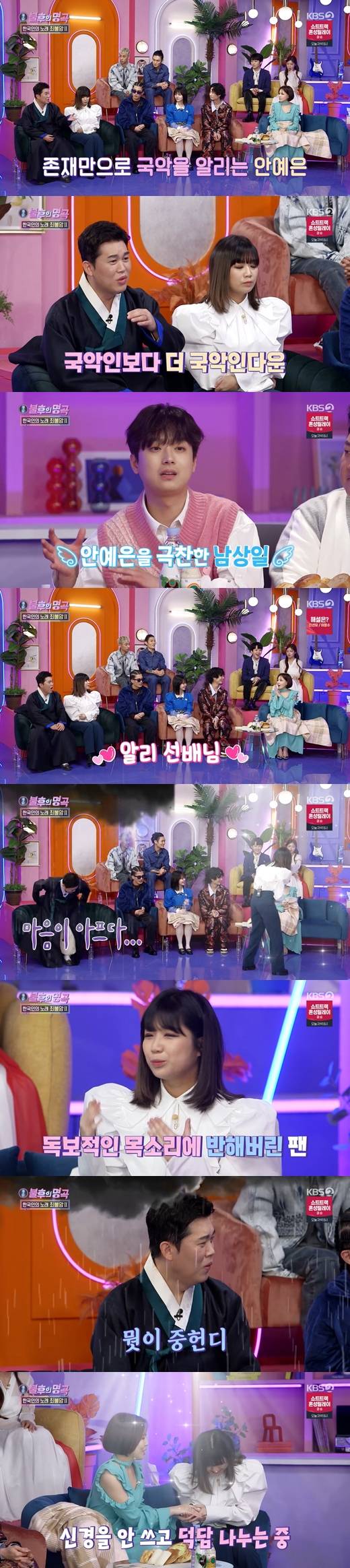 이날 남상일은 "개인적으로 후배지만 안예은의 팬이다. 국악 정서가 다 들어있다. 전공을 국악으로 했어도 좋았을 것"이라며 극찬을 쏟아냈다.