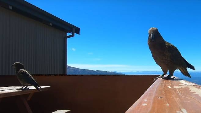 현지 시간 4일, 가디언지 등 현지 언론은 남섬 피오르드랜드 국립공원 럭스모어 산장에 묵던 버흘 가족이 발코니에 올려둔 카메라를 새가 물고 날아가 영상을 남겼다고 보도했습니다.