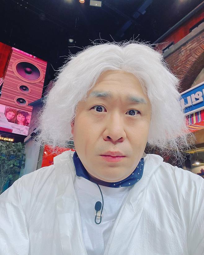공개된 사진 속 문세윤은 분장을 한 채 백발 가발을 쓴 모습이다. 최근 대상 공약으로 강호동의 헤어스타일 변신을 시도한 문세윤의 새로운 모습이 눈길을 끈다.