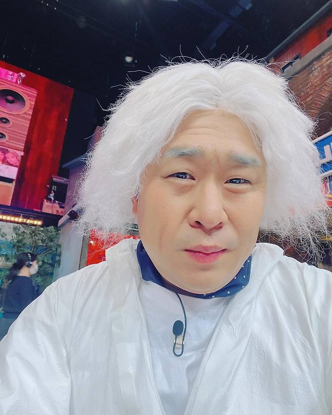 공개된 사진 속 문세윤은 분장을 한 채 백발 가발을 쓴 모습이다.